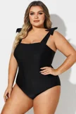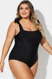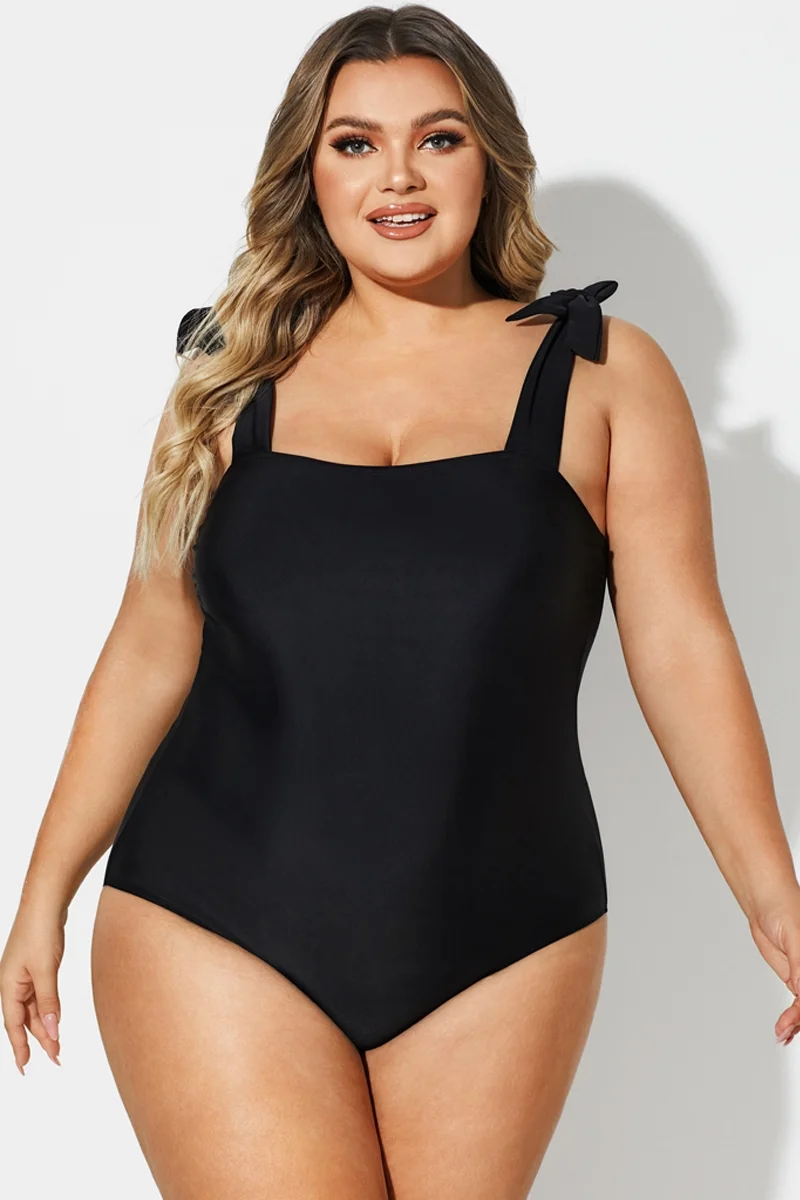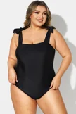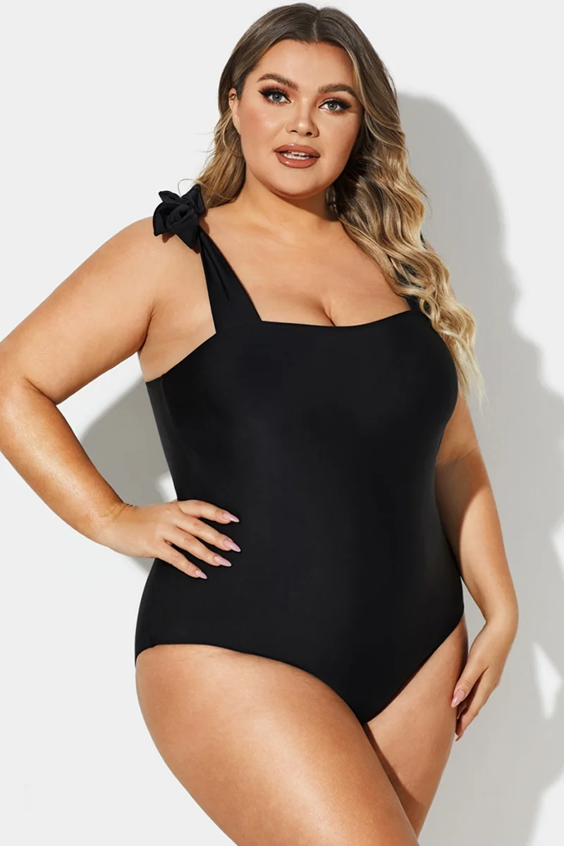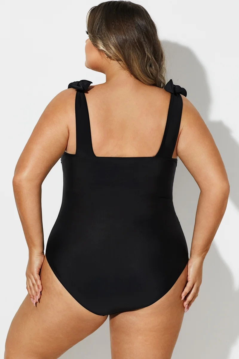 Black Square Adjustable Tie One Piece Swimsuit - PremCurve
