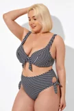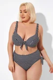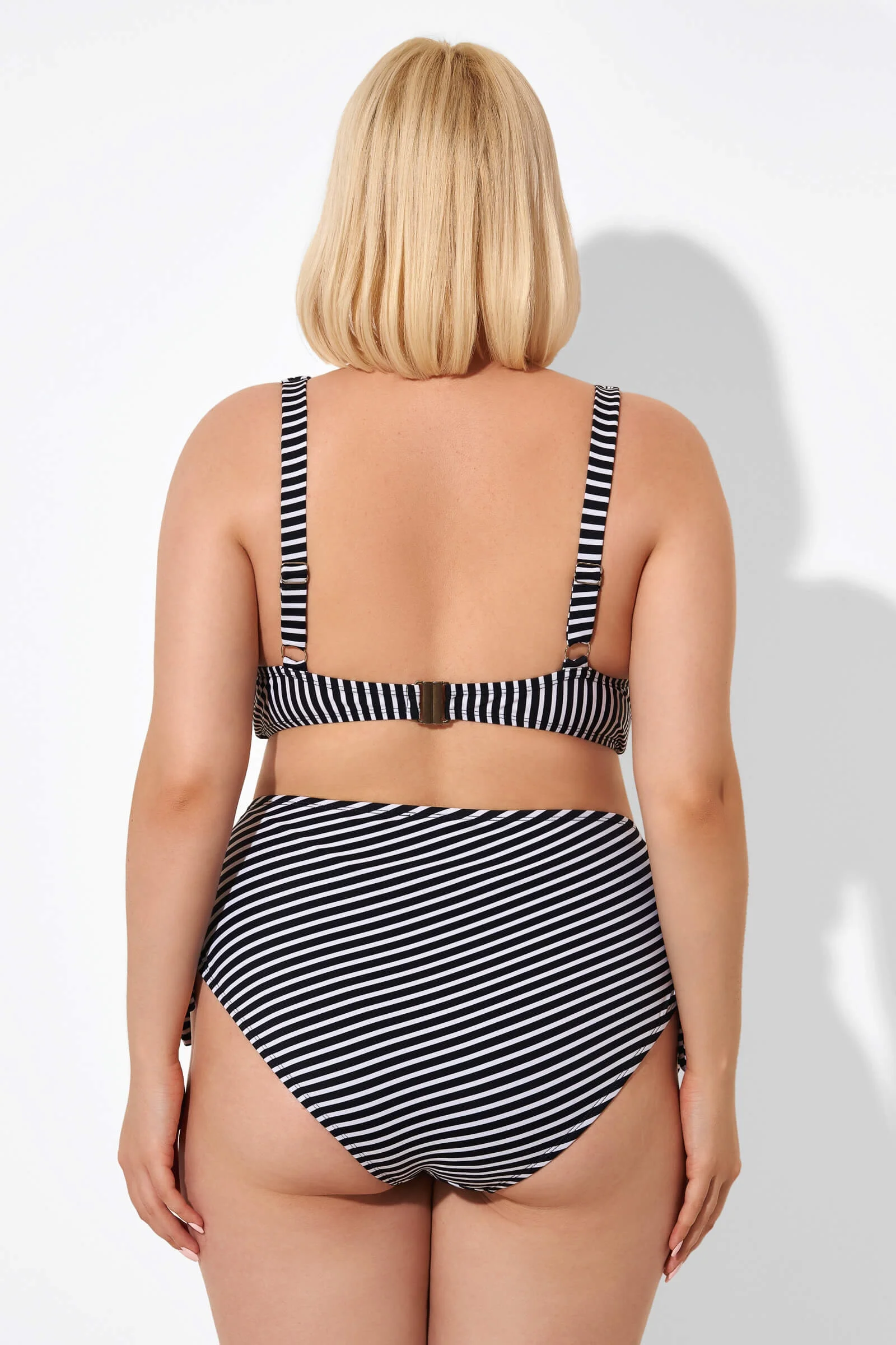 Black Stripes Knot Front Underwire Bikini Top - PremCurve