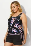 Black Tribal Pattern Side Tie Tankini Top - PremCurve