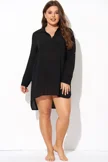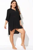 Black V-neck Side Split Cover Up Shirt Beach Dress