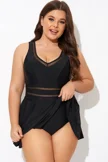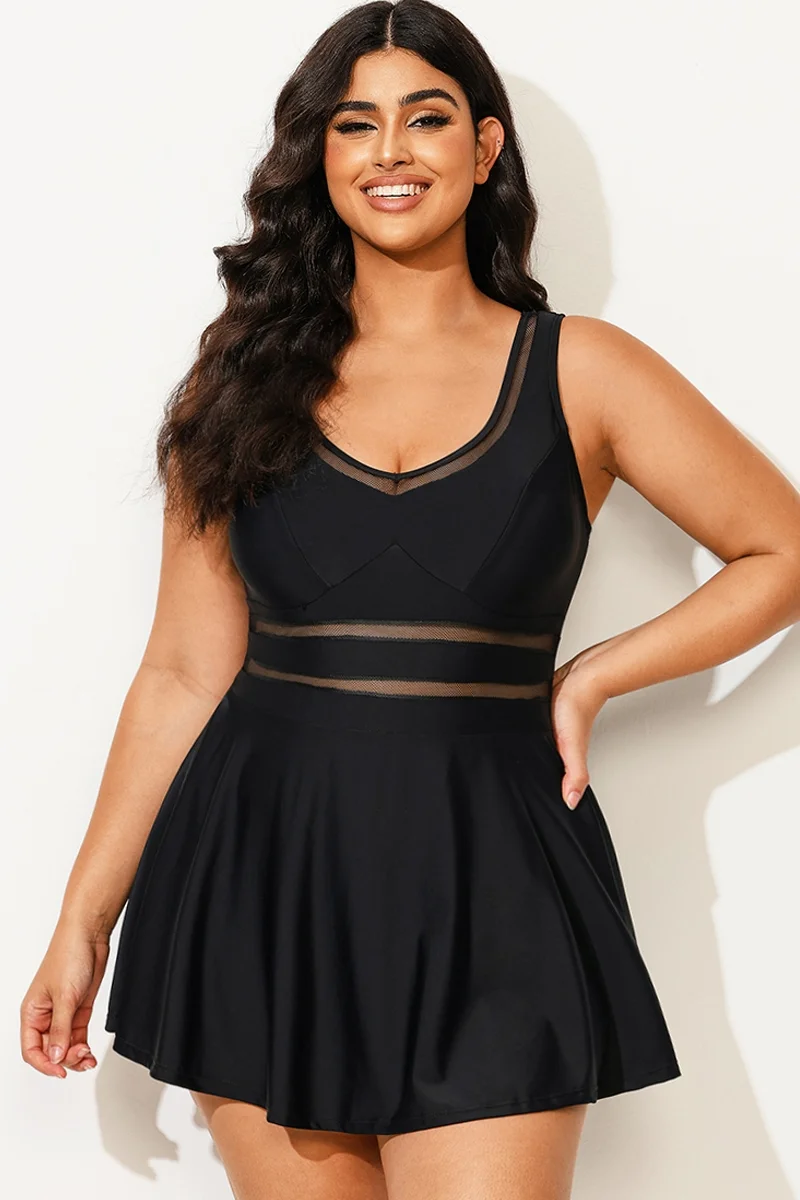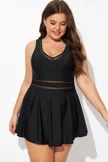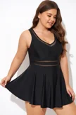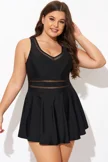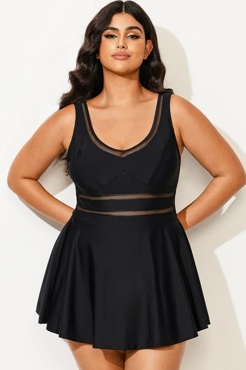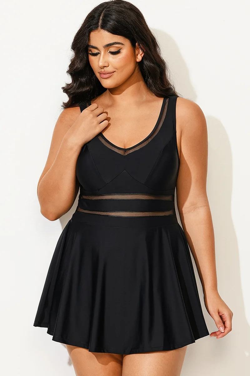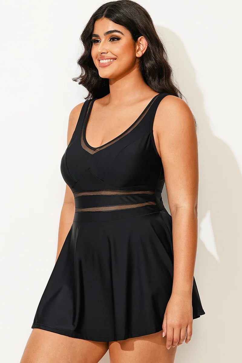 Black V-neck Wide Strap Crochet Detail Swimdress