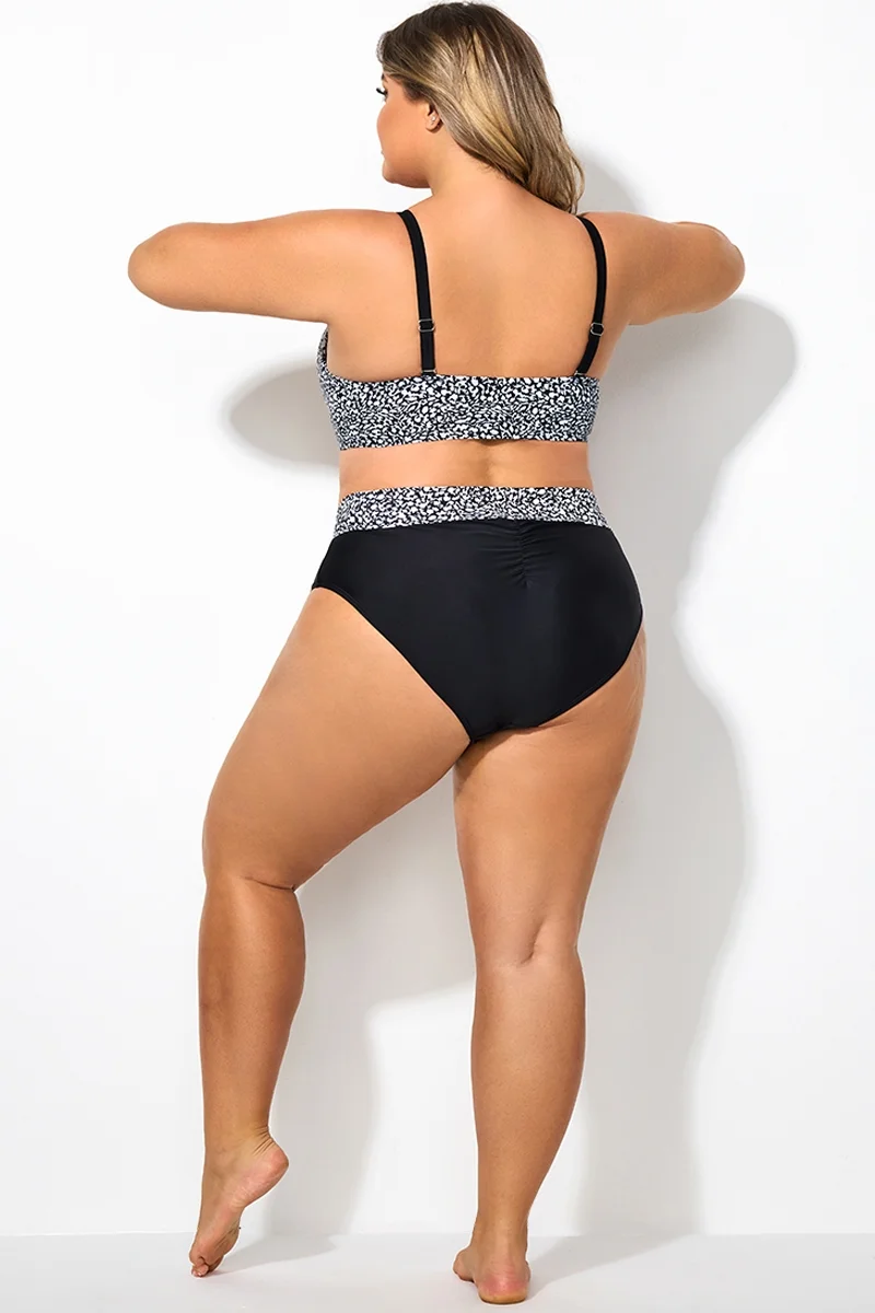 Black&White Abstract Print High Waist Shirred Brief - PremCurve
