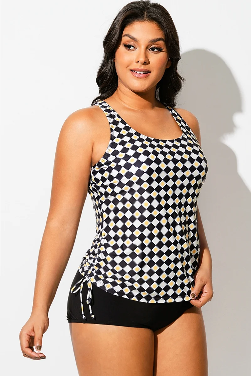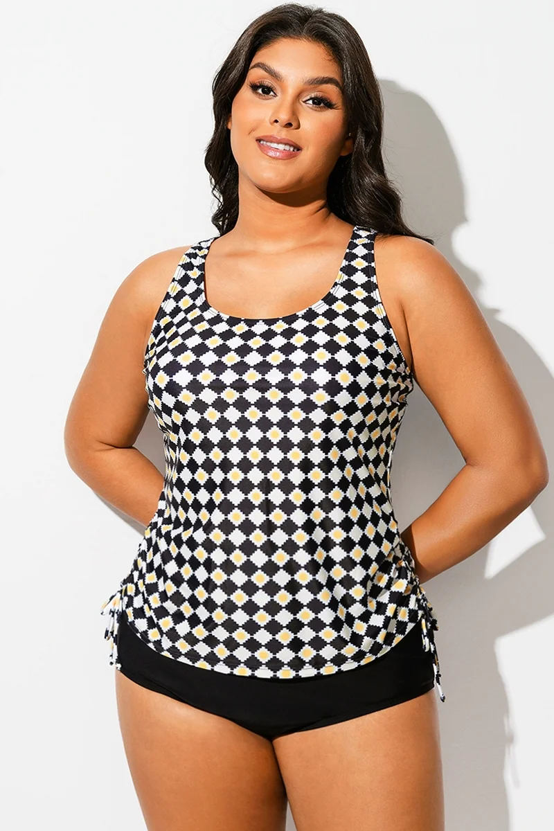 Black & White Check V-Neck One Piece Swimsuit - PremCurve