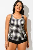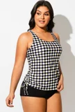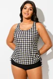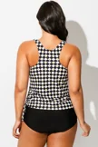 Black & White Check V-Neck One Piece Swimsuit