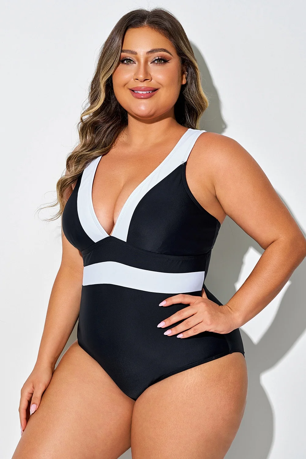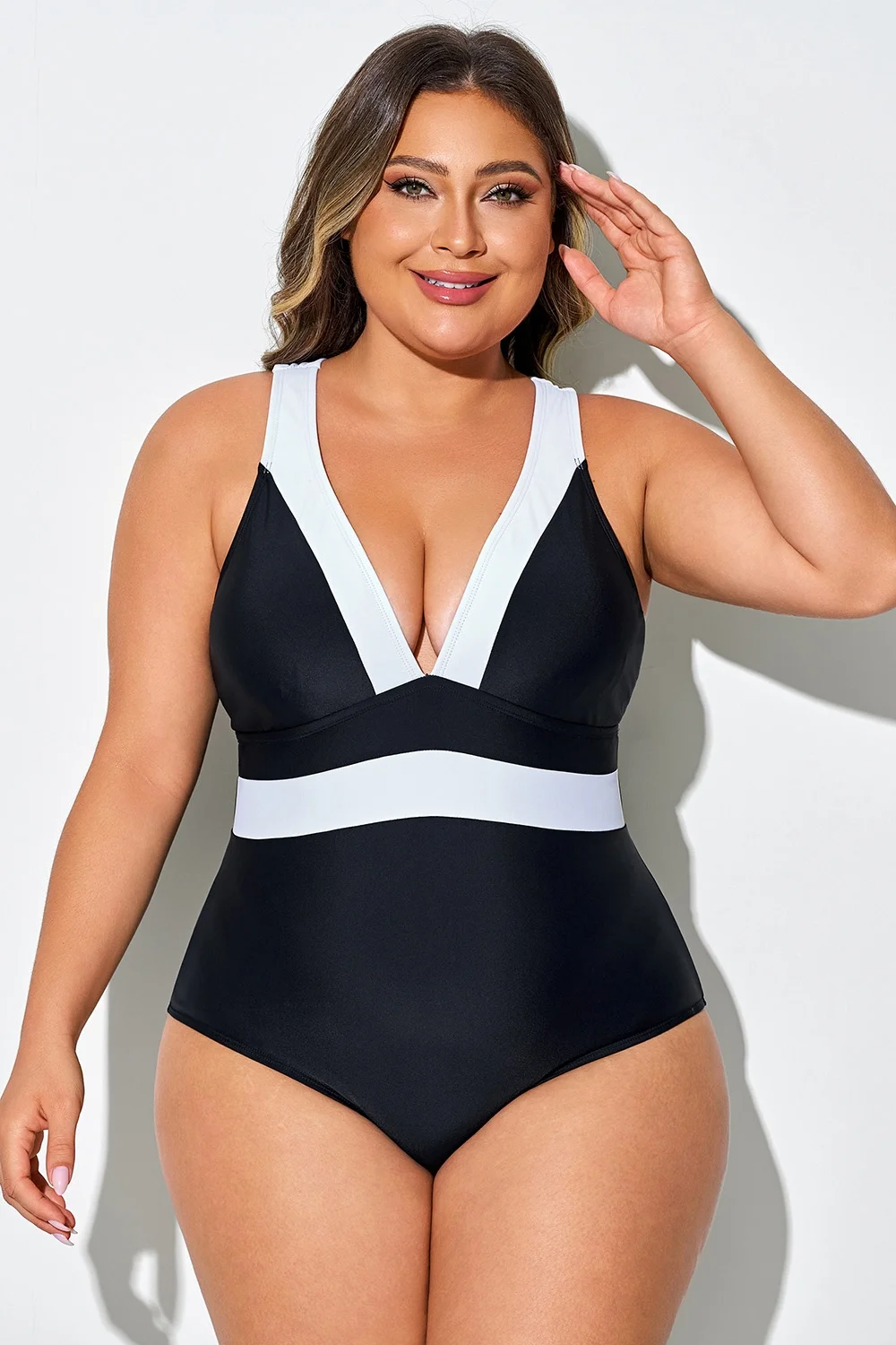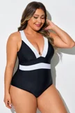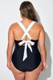 Black & White Colorblock Back Tied One Piece Swimsuit - PremCurve