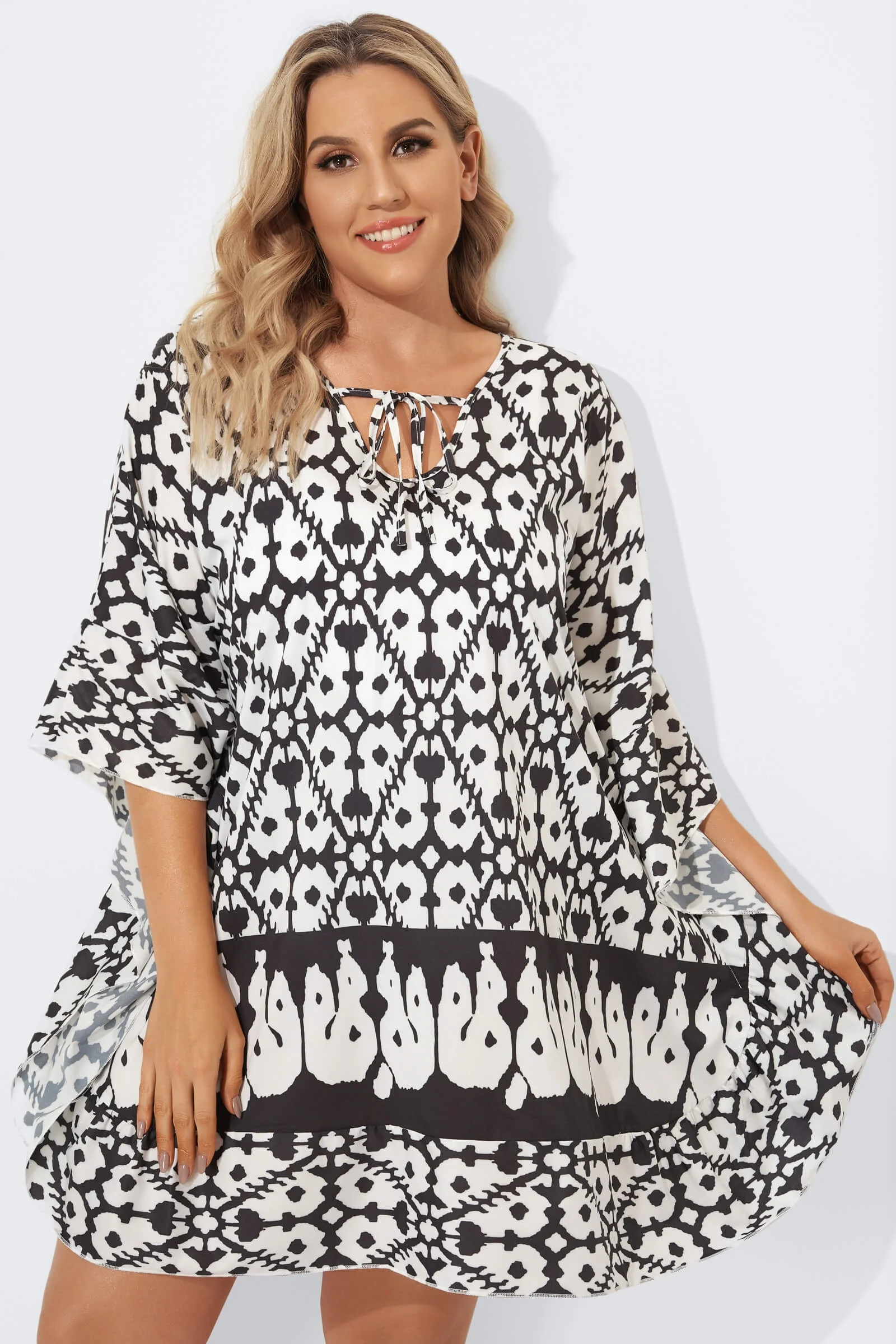 Black & White Deep V-Neck Vintage Cover Up - PremCurve