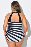 Black & White Diagonal Stripes Sarong Front One Piece Swimsuit
