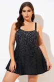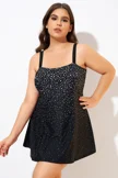 Black White Dot Square Neckline Adjustable Straps Swimdress