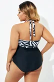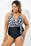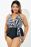 Black & White Faux Wrap Halter One Piece Swimsuit