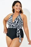 Black & White Faux Wrap Halter One Piece Swimsuit - PremCurve