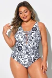 Black & White Floral Elegant One Piece Swimsuit
