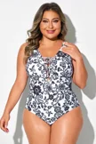 Black & White Floral Elegant One Piece Swimsuit - PremCurve