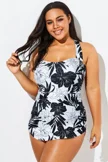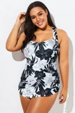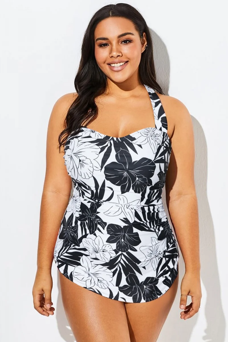 Black&White Floral Sarong One Piece Swimsuit - PremCurve