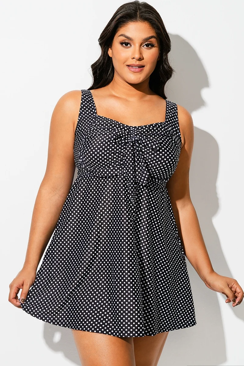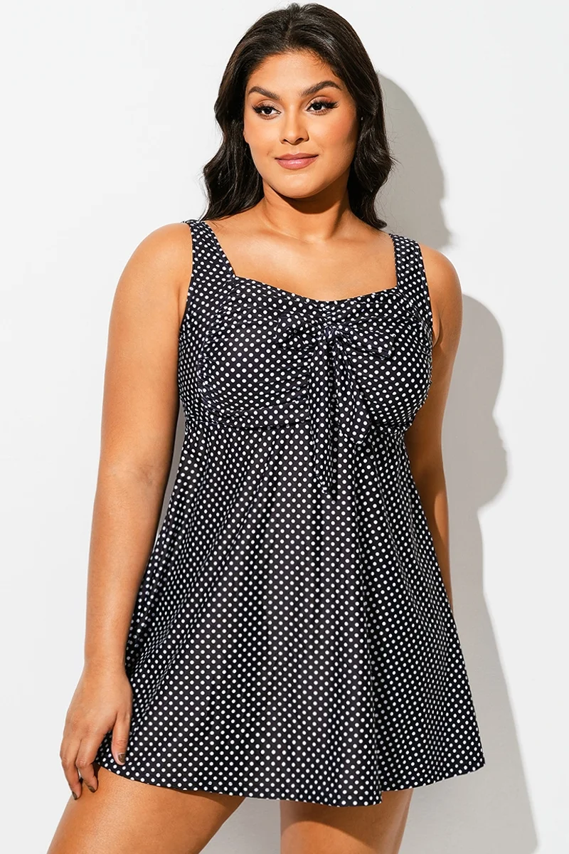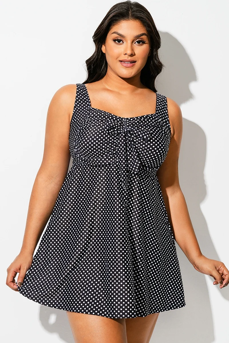 Black & White Polka Dot Knot Sexy Swimdress - PremCurve