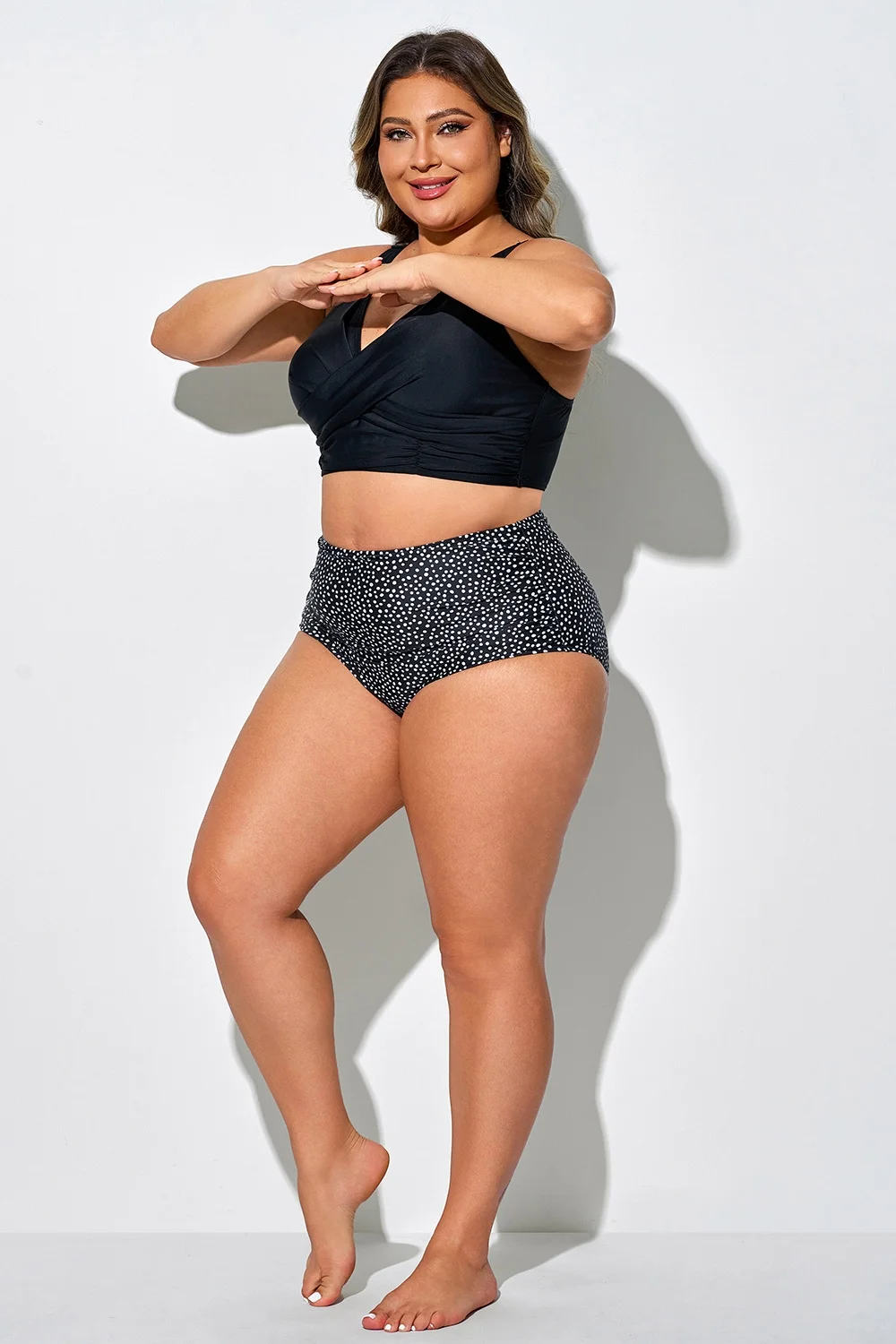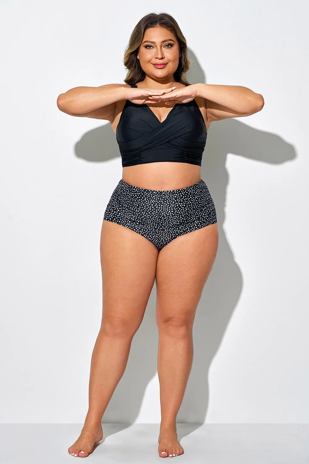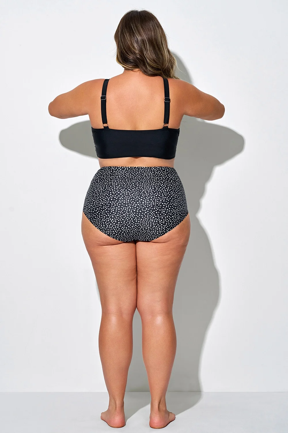 Black & White Polka Dots High Waist Bikini Bottom - PremCurve