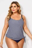 Black & White Stripe Side Tie V-Neck Tankini Top - PremCurve