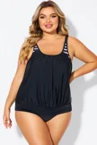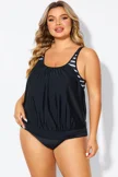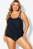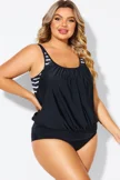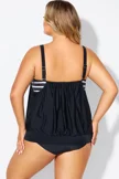 Black & White Striped Drawstring Side Tankini Top - PremCurve