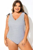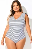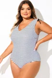 Black & White Striped V-Neck One Piece Swimsuit - PremCurve