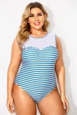 Blue & White Stripes Mesh One Piece Swimsuit