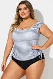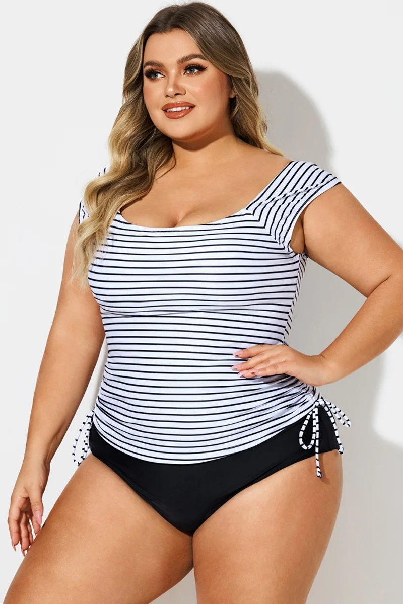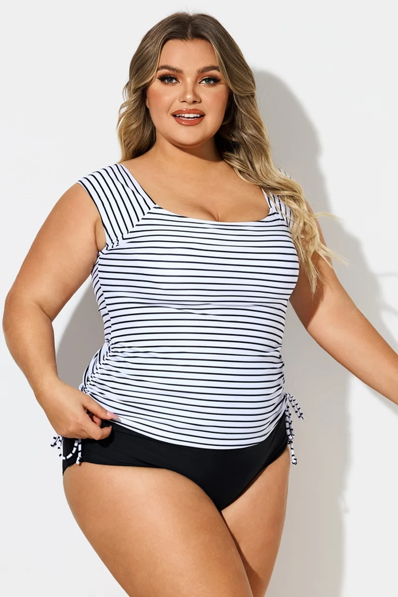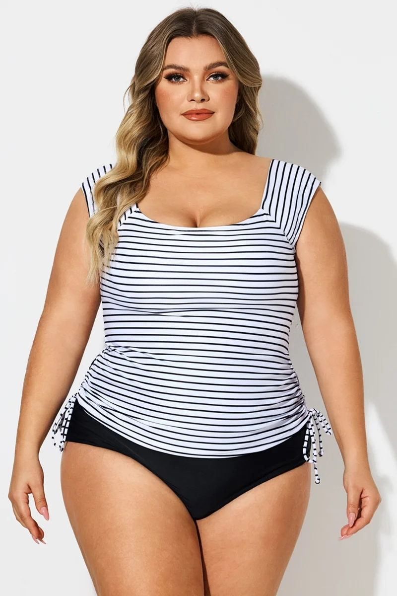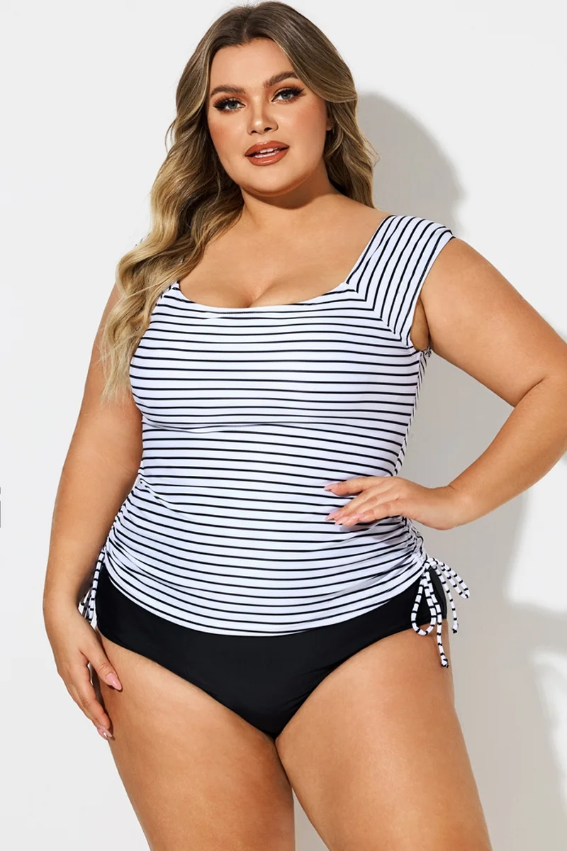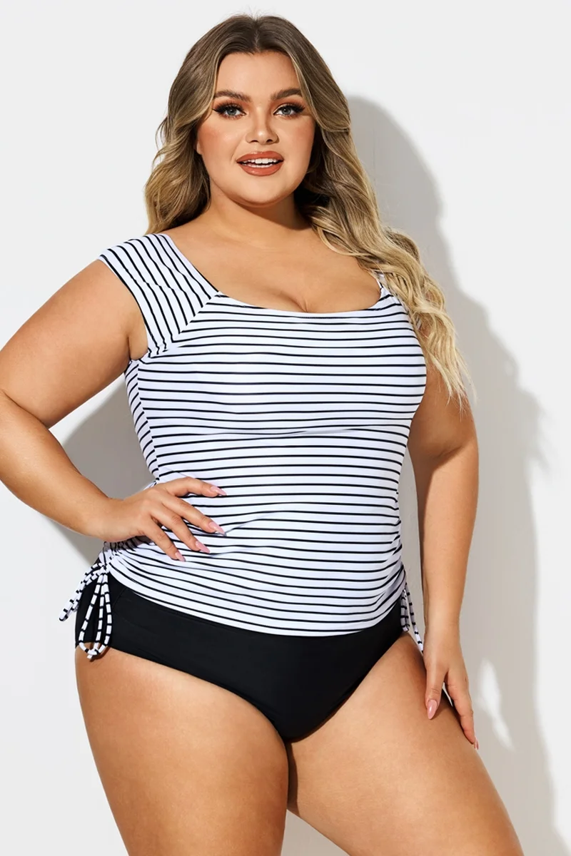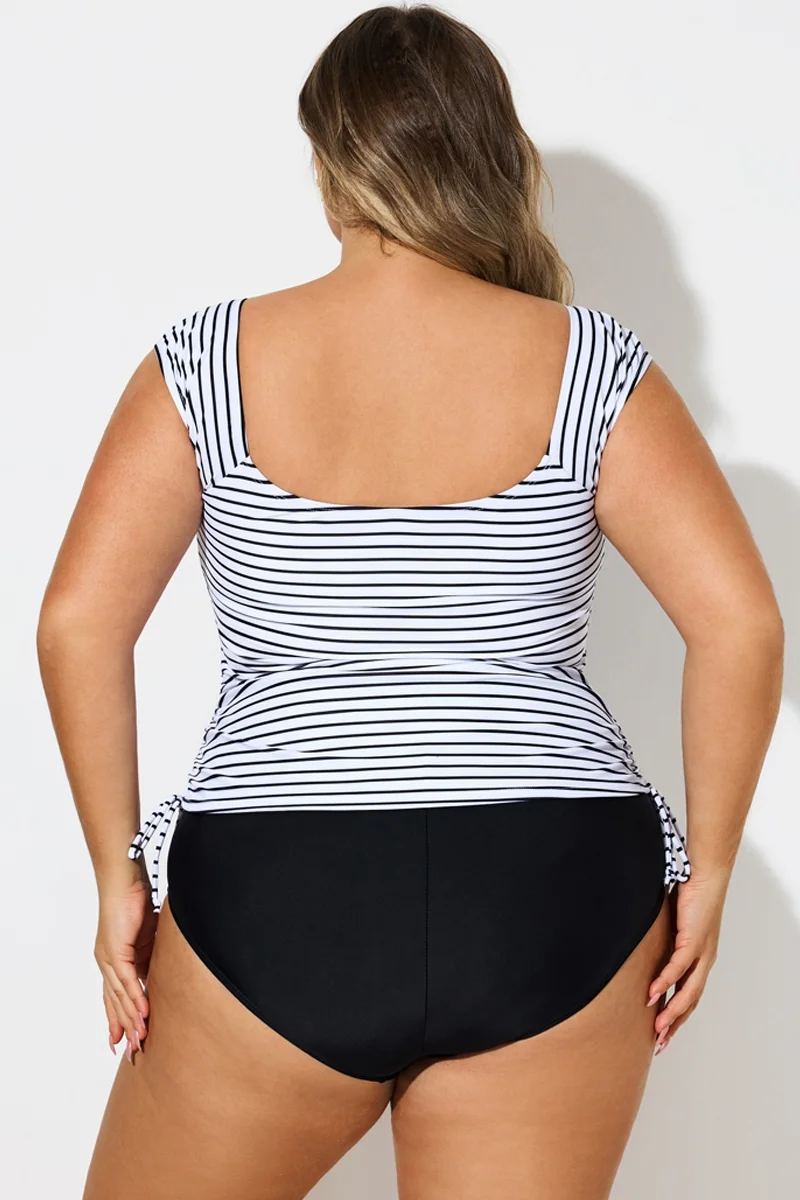 Black & White Stripes Tie Side Tankini Top - PremCurve