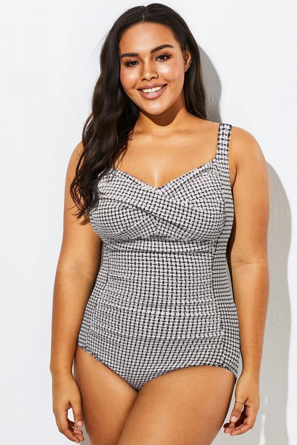 Green Check Twist Front One Piece Swimsuit
