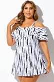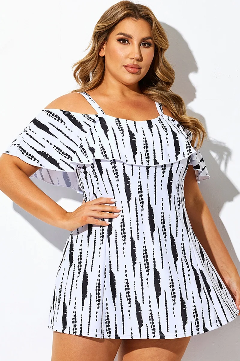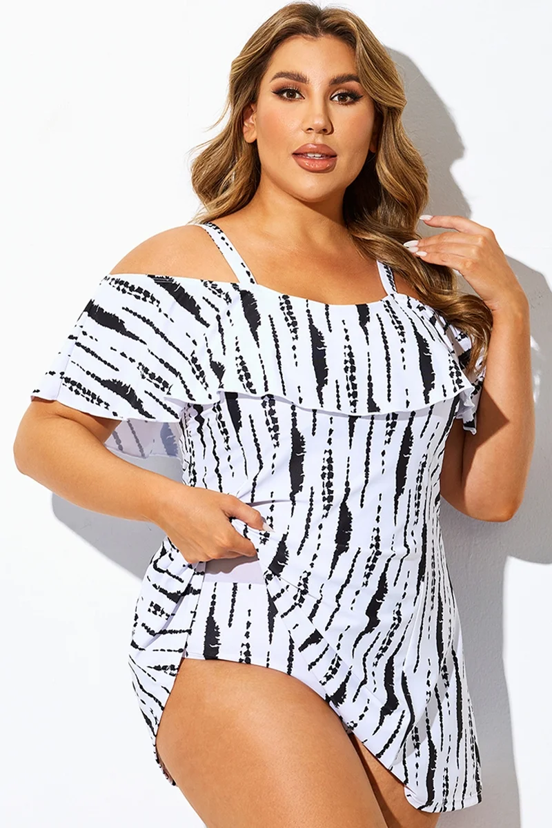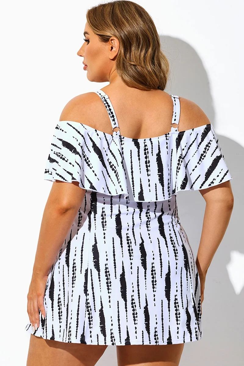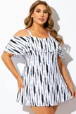 Black & White Tie-Dye Off-the-Shoulder Swimdress