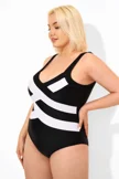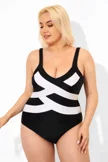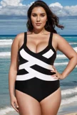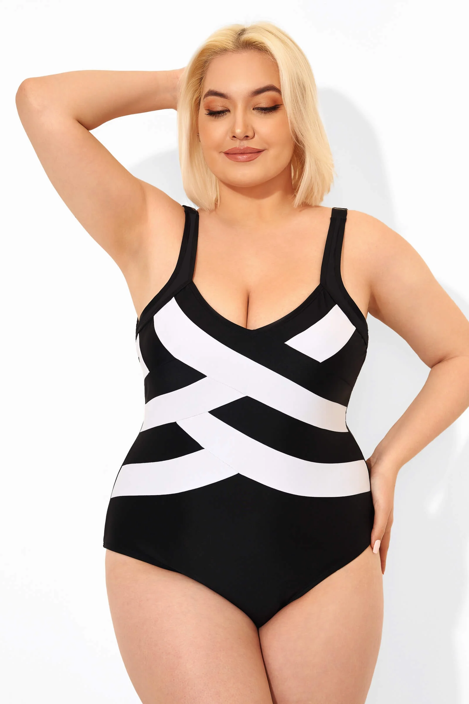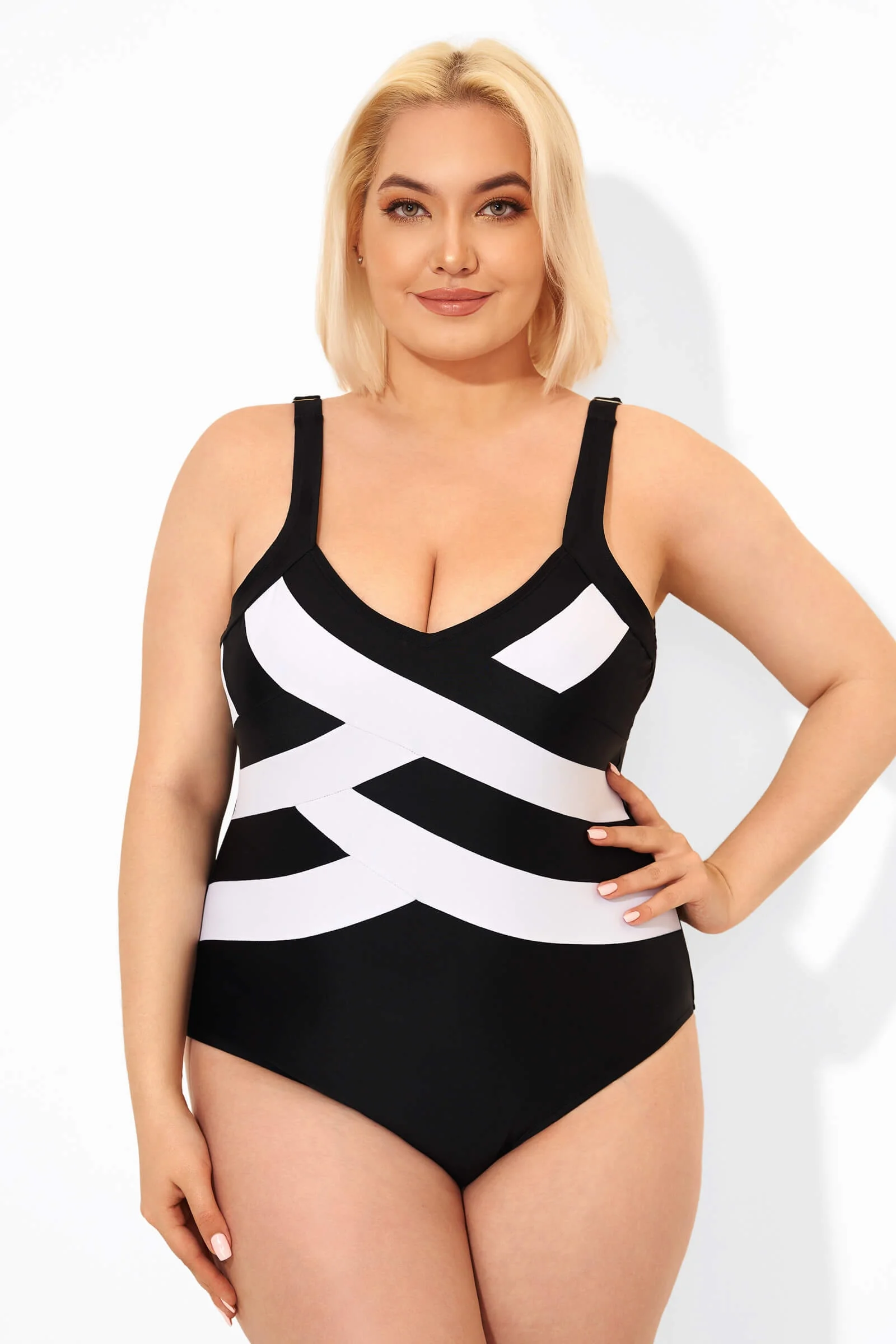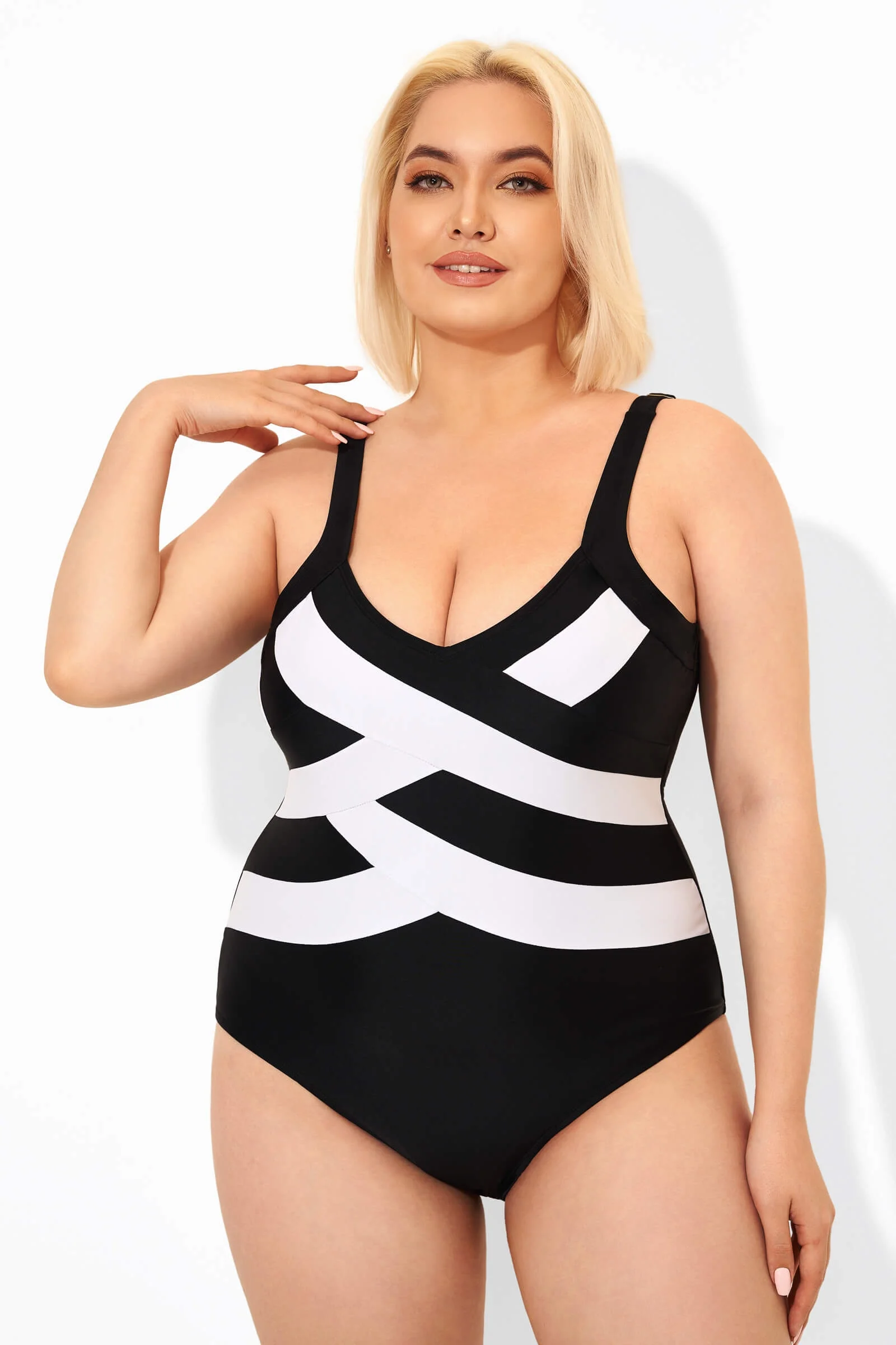 Black & White V-Neck Criss Cross One Piece Swimsuits