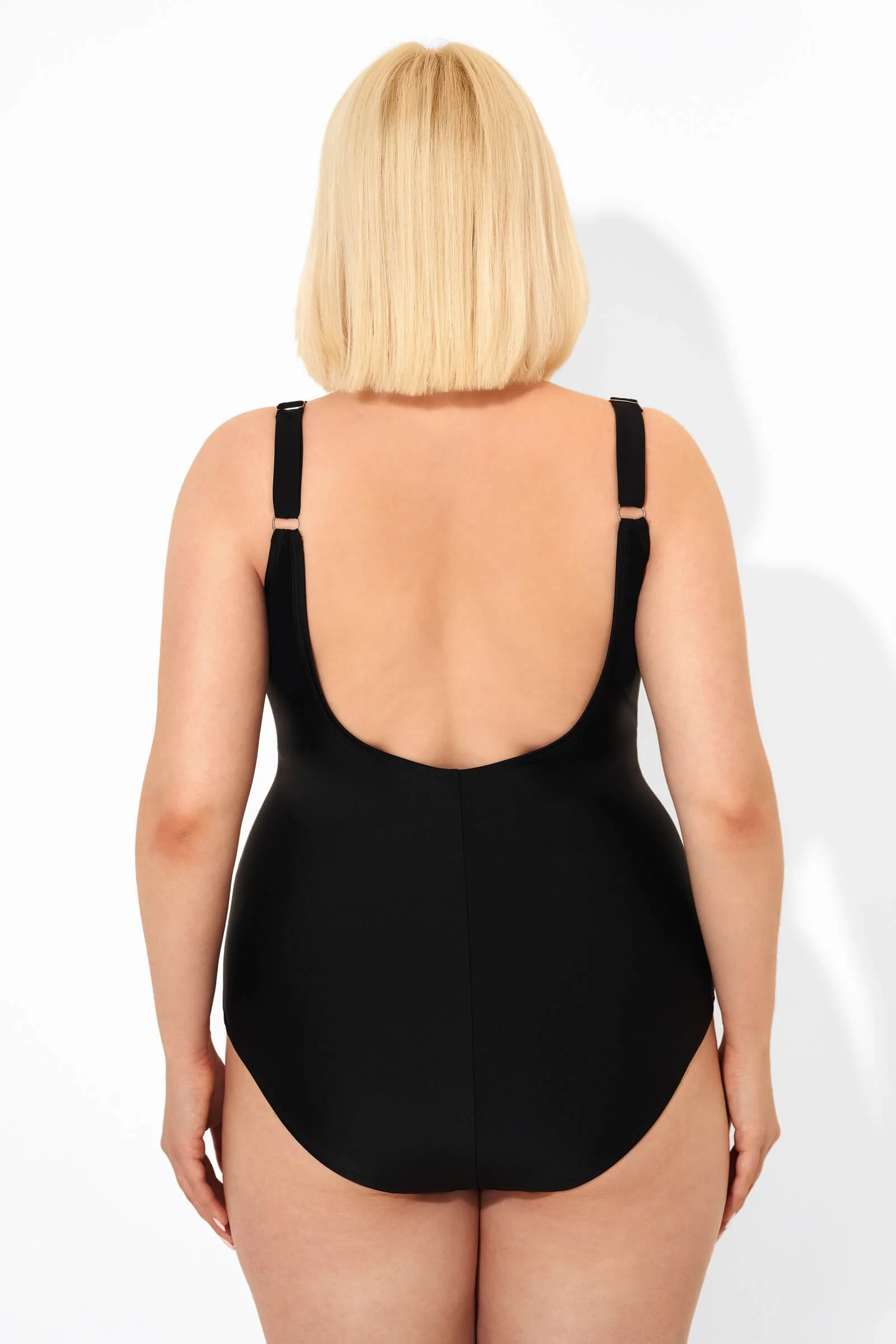 Black U-neck Criss Cross One Piece Swimsuits - PremCurve