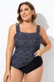 Black Wide Straps Tie-back White Speckle Tankini Top - PremCurve