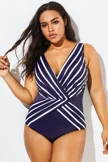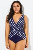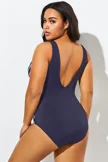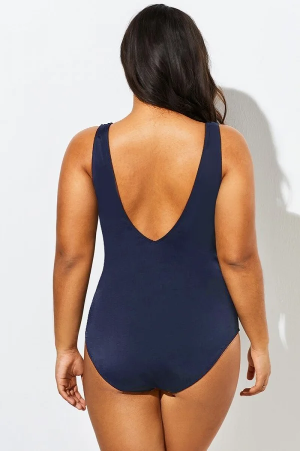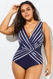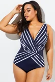Modern Sarong Front V-Neck One Piece Swimsuit