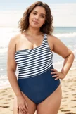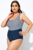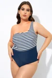 Blue and White Stripe One Shoulder One Piece Swimsuit - PremCurve