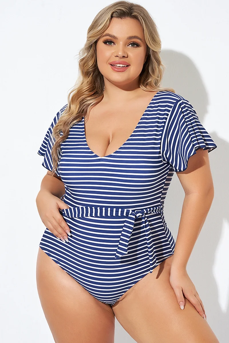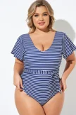 Blue and White Stripe Women One Piece Swimsuit - PremCurve