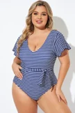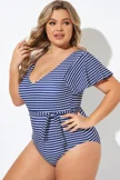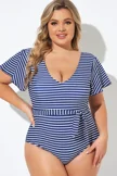 Blue and White Stripe Women One Piece Swimsuit