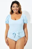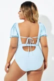 Blue Back Tie Short Sleeve One Piece Swimsuit - PremCurve