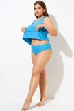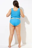 Blue Shirred High Waist Swim Brief For Lady