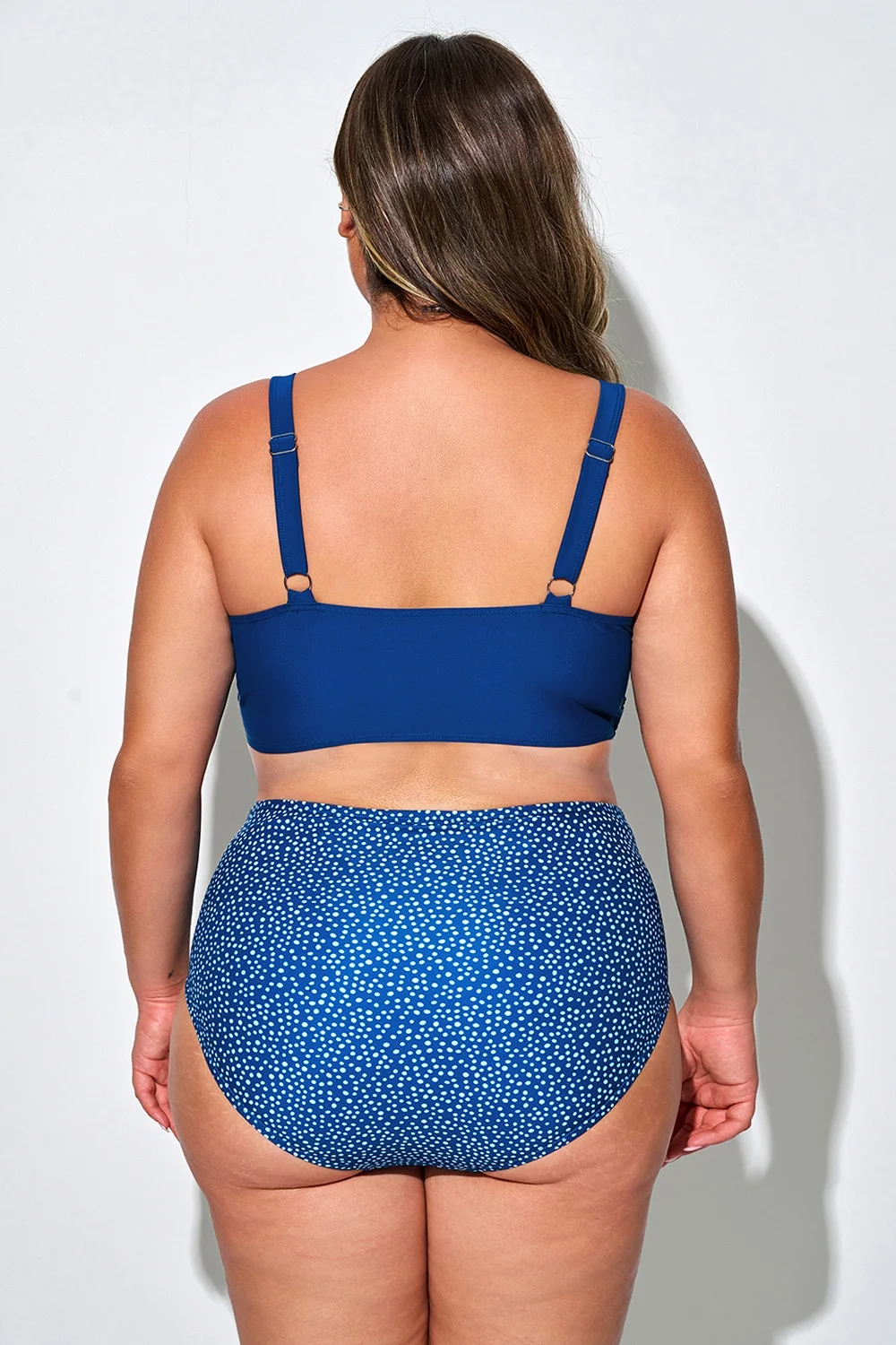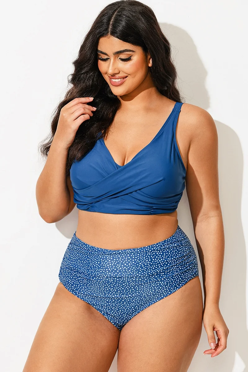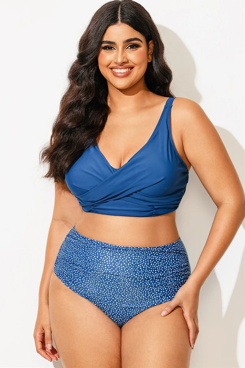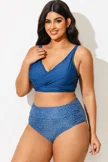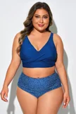 Plus Size Round Neck Black Patchwork Bikini Top