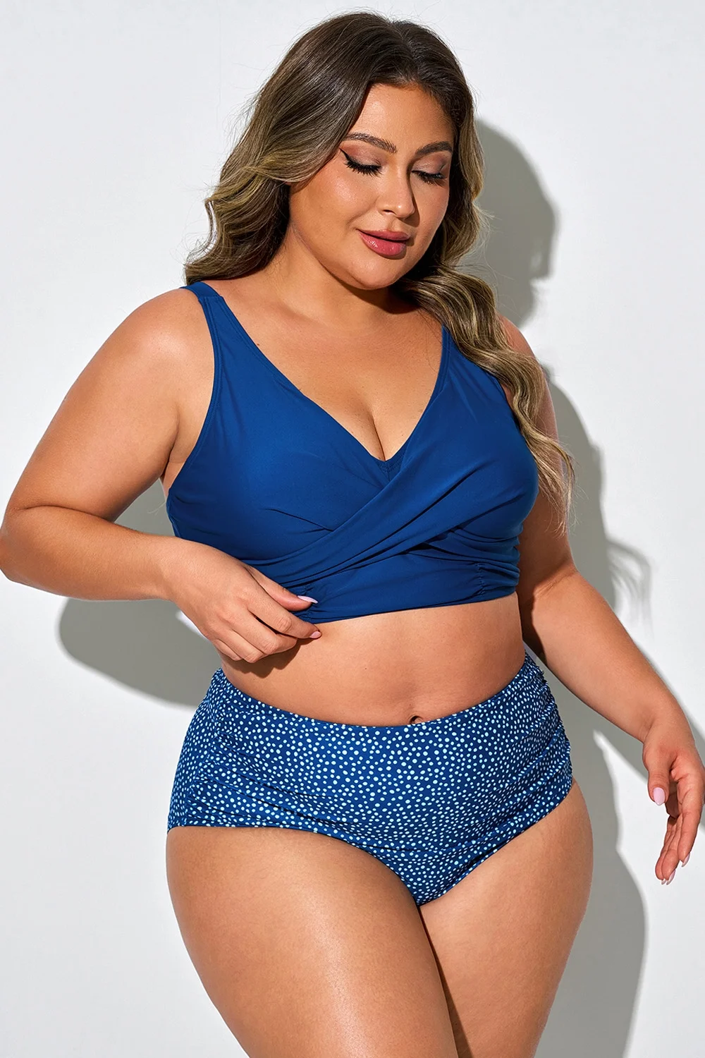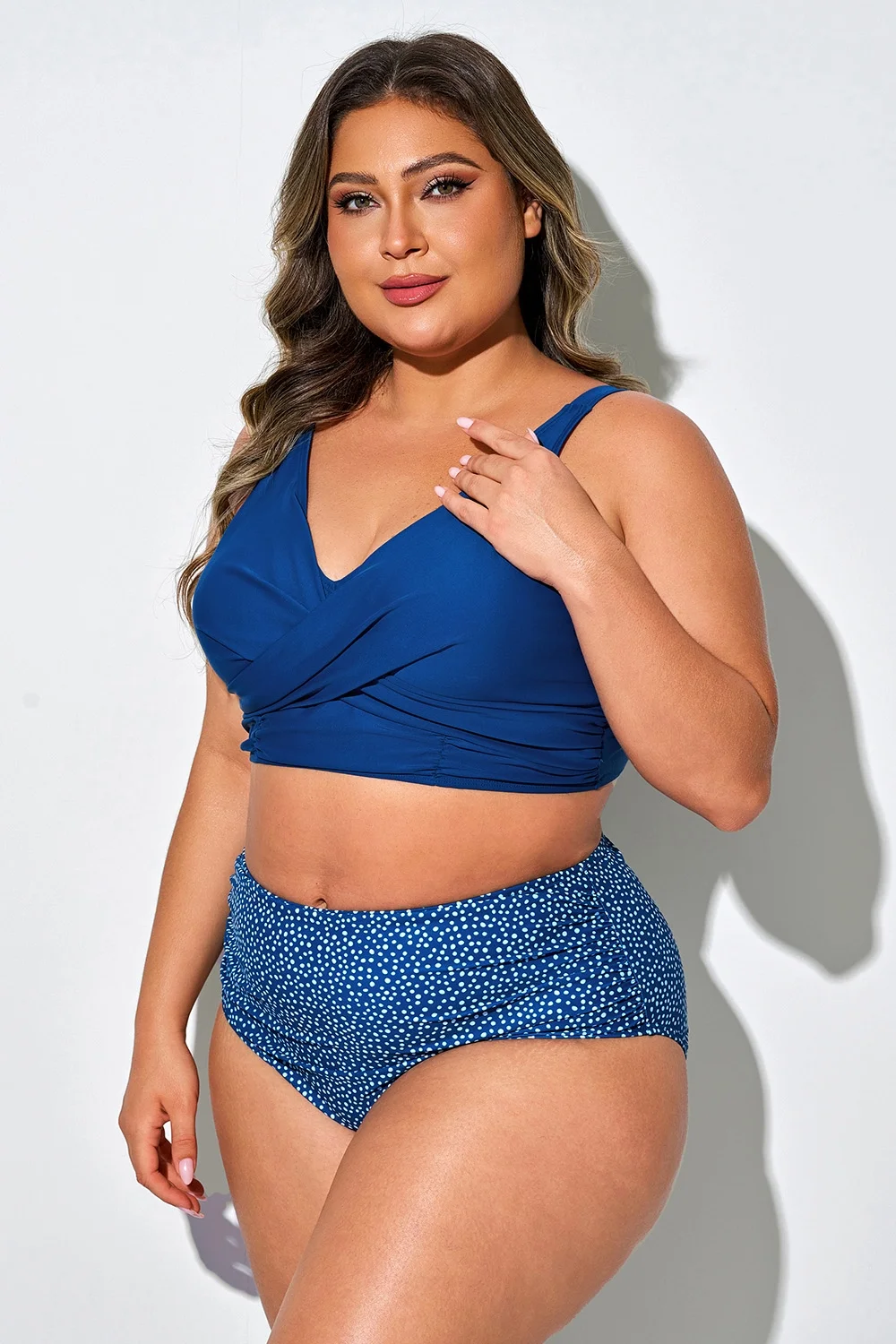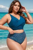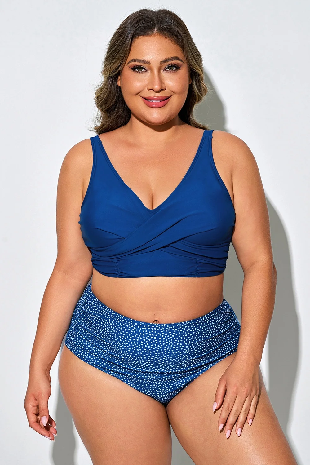 Plus Size Round Neck Black Patchwork Bikini Top