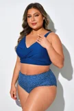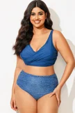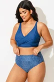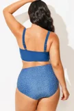 Blue Shirred High Waist Swim Brief For Lady
