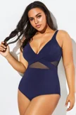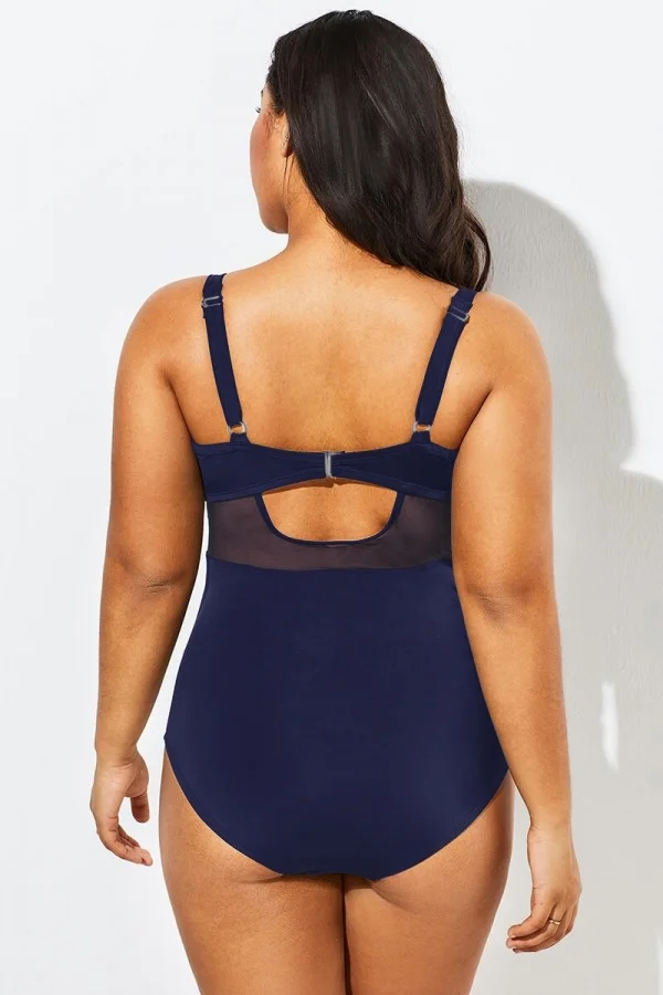 Blue Cut Out Mesh Underwire One Piece Swimsuit