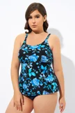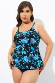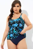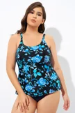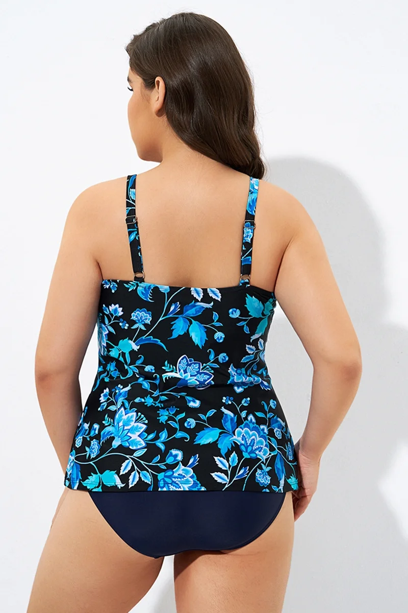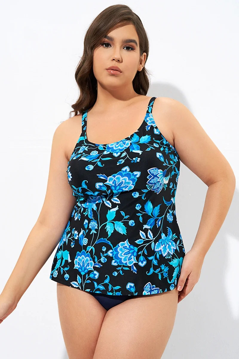 Blue Floral Print Adjustable straps Tank Tankini Top
