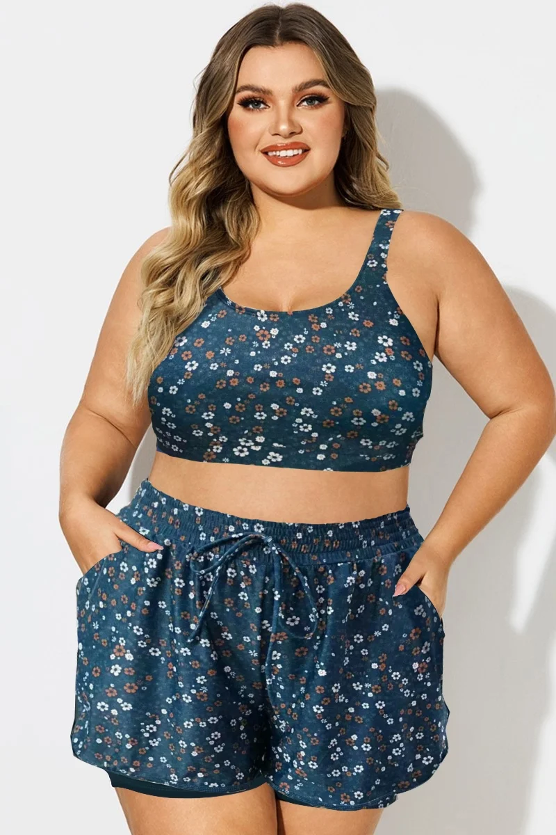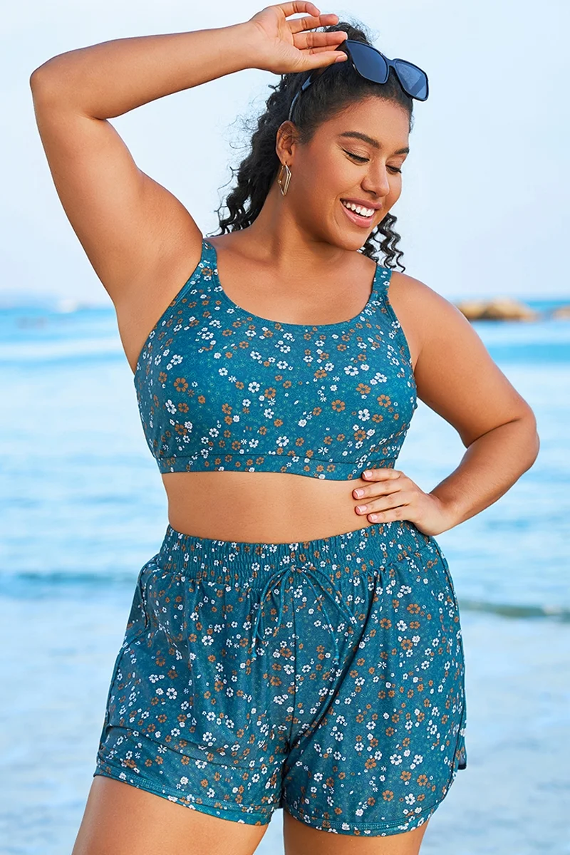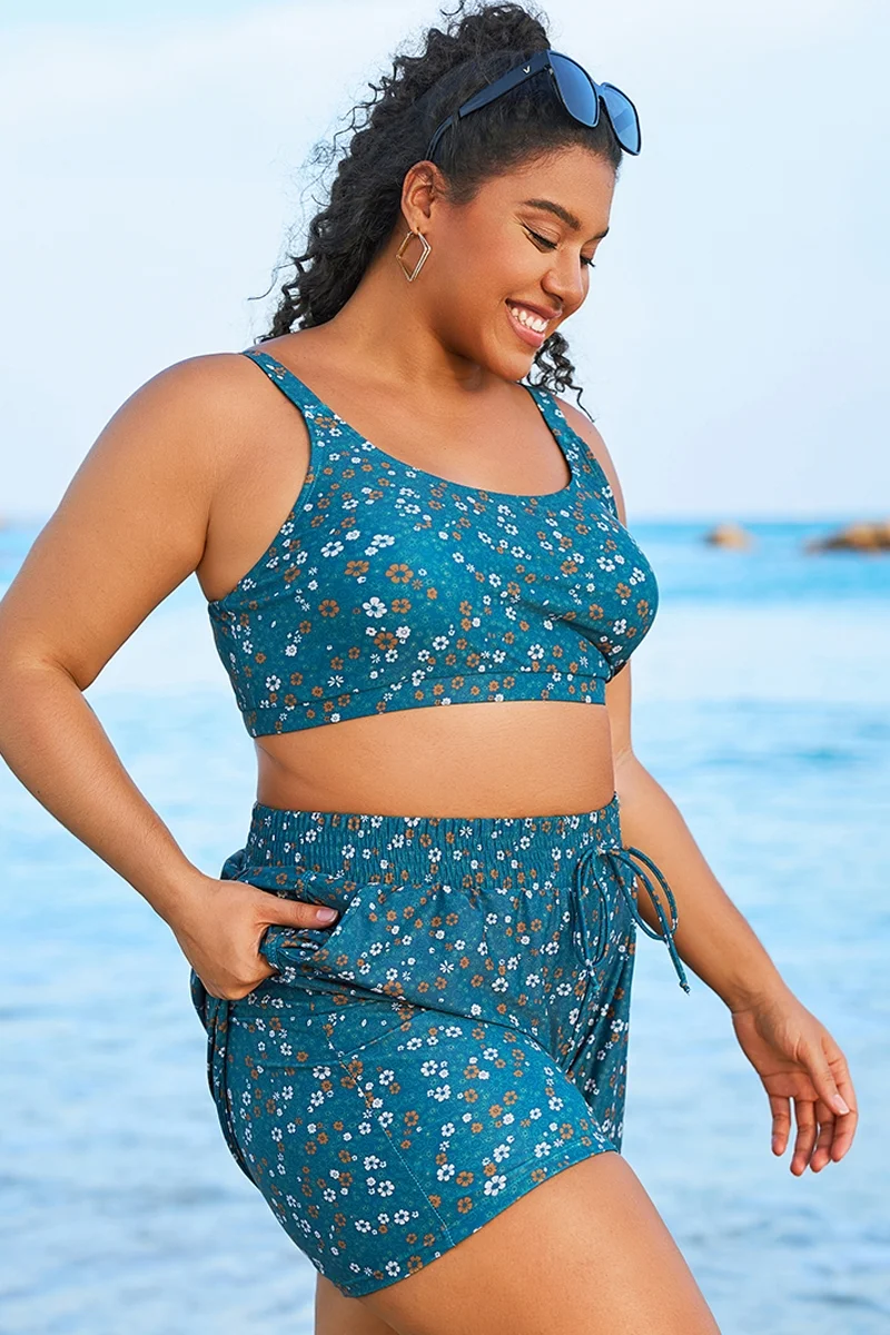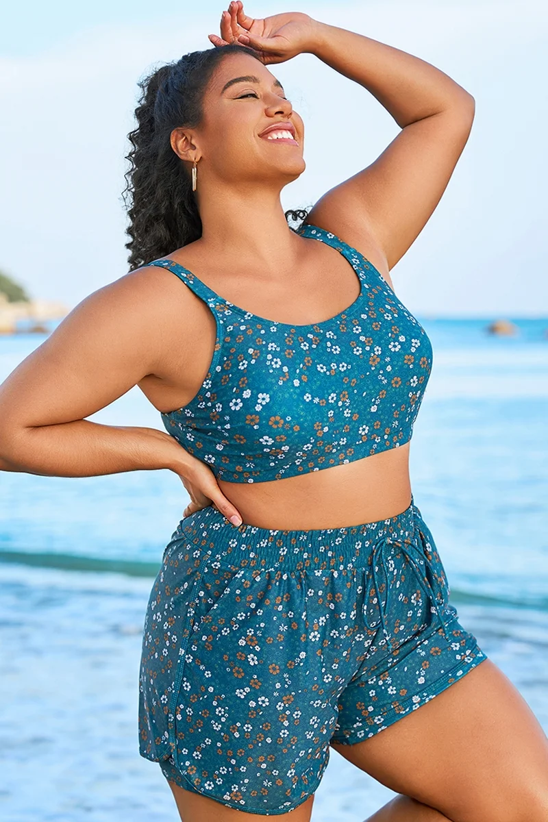 Blue Floral Print Wide Strap Women Bikini Top - PremCurve