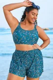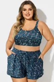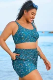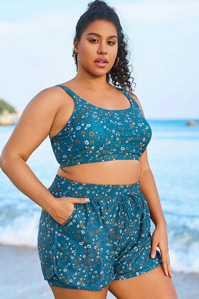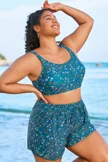 Blue Floral Print Wide Strap Women Bikini Top