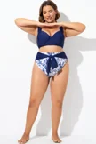 Blue Shirred High Waist Swim Brief For Lady
