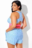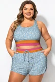 Blue Floral Round Neck Patchwork Bikini Top