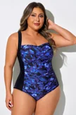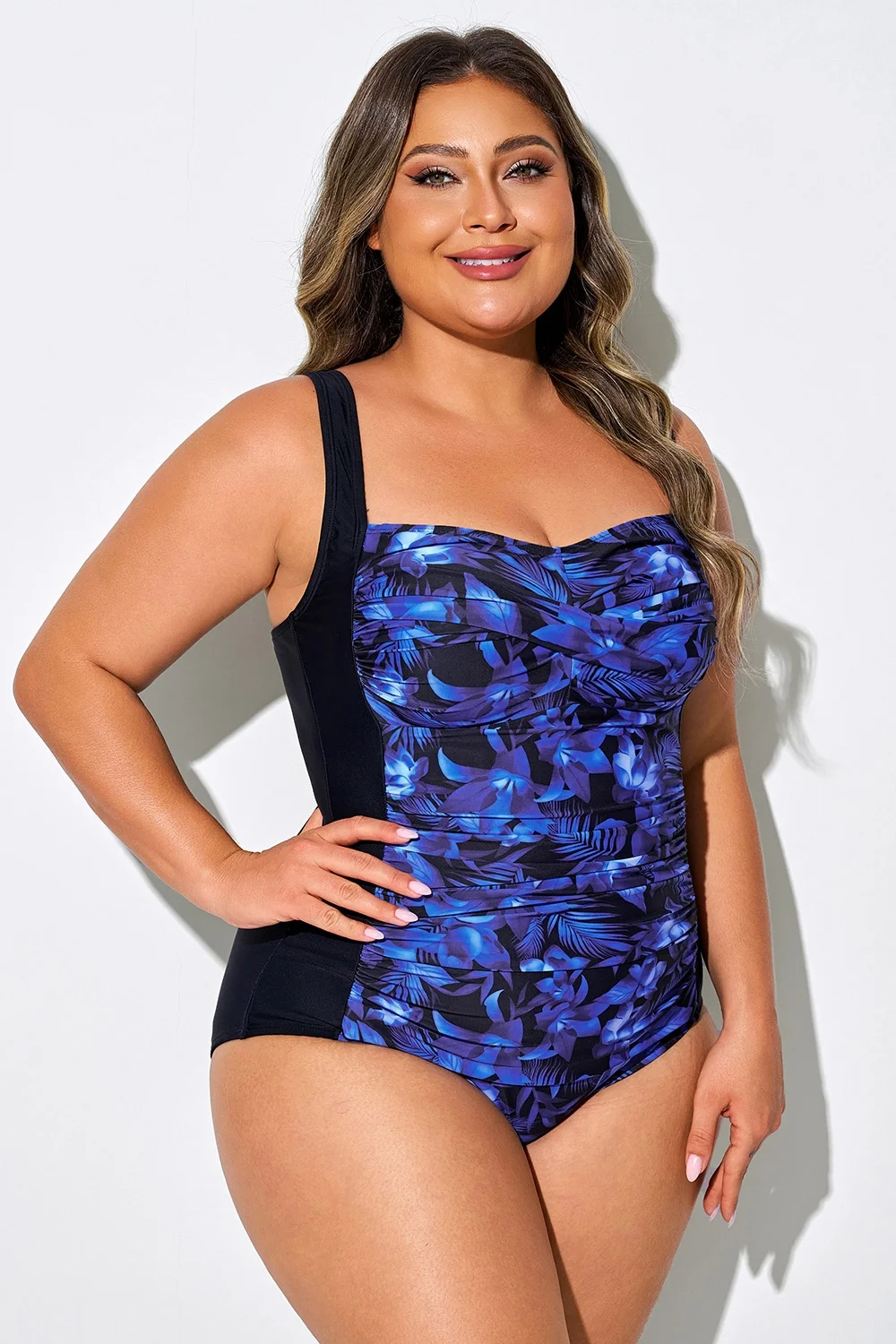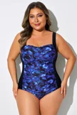 Blue Floral Twist Front Push Up One Piece Swimsuit - PremCurve