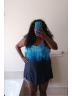 Blue V-Neck Loop Strap Halter Bikini Top
