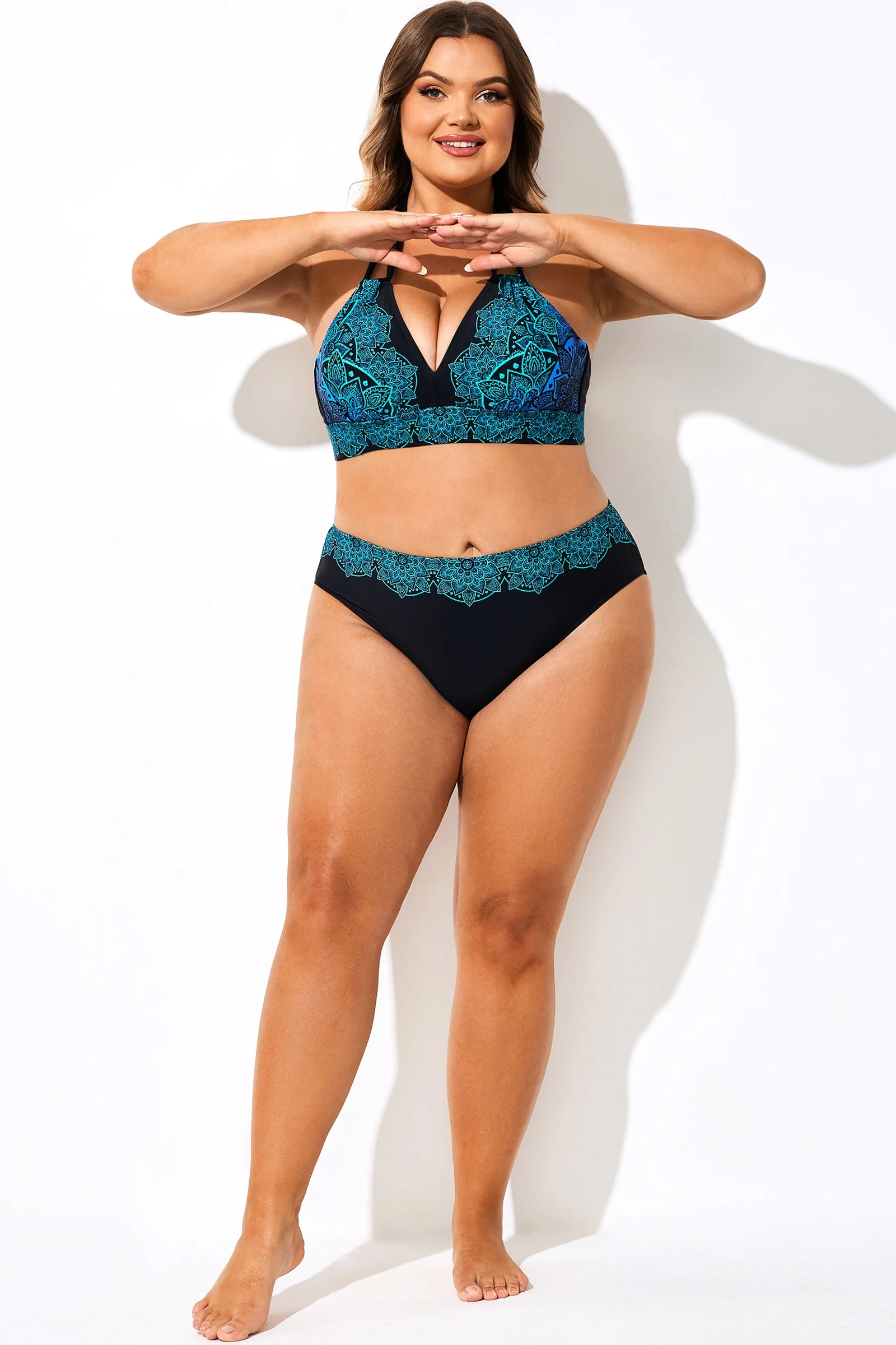 Blue Ombre Lace Print Full Coverage Bikini Bottom