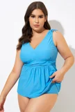 Blue Ruched Retro V Neck Tankini Top - PremCurve