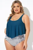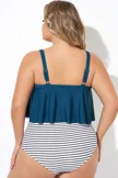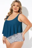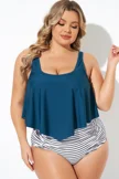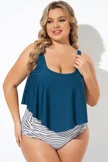 Blue Scoopneck Ruched Flounce Blouson Tankini Top - PremCurve