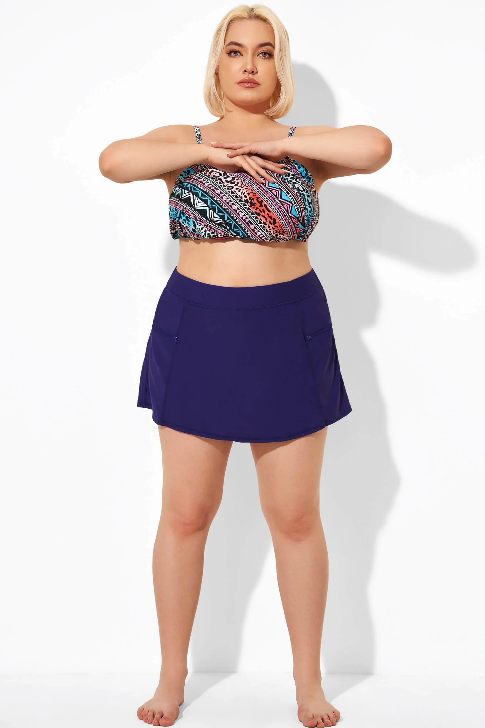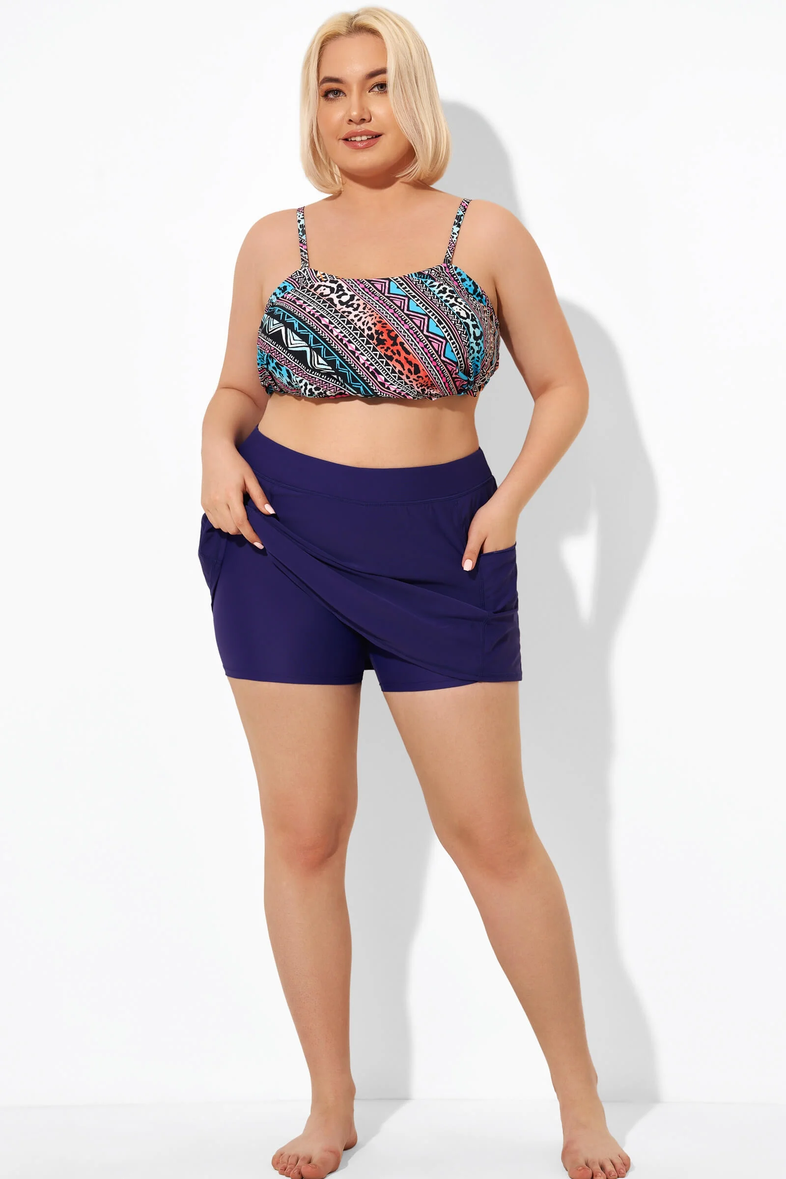 Plus Size Indigo Dot Square Neck Bikini Top